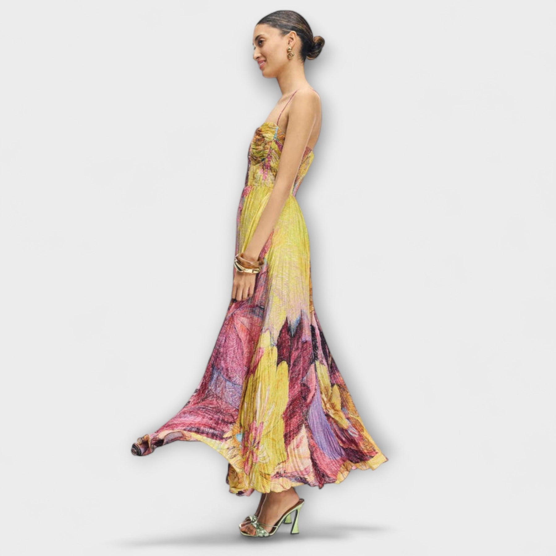 With its elegant heart-shaped neckline and sleeveless silhouette, it perfectly combines style and comfort. Made from 100% lightweight, breathable polyester, the dress flows beautifully as you move – ideal for summer parties or sun-drenched holiday days.
